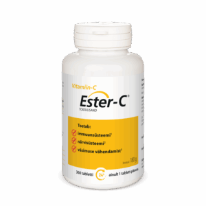 Ester-C® on kaasaegne C-vitamiini vorm patenteeritud koostisega. Selle iseloomulikuks omaduseks on parem biosaadavus (imendumine) kui L-askorbiinhappel¹ ning organismile kerge toime. Ester-C® on happeline vorm, mis on mao limaskestale õrn. Tänu unikaalsele tootmisprotsessile püsib see C-vitamiini vorm organismis kauem², isegi kuni 24 tundi, mistõttu on see efektiivsem. Tablett on meeldiva tsitrusemaitsega ja seda võib alla neelata, närida või imeda.