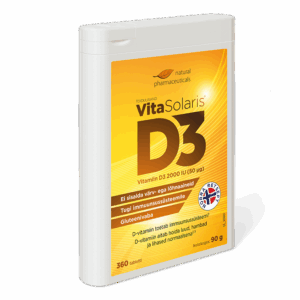 Vitamiin D3 on oluline immuunsüsteemi jaoks, mis aitab Teil terve aasta jooksul tervist nautida! VitaSolaris D3 on toidulisand, mis sisaldab suurt annust D3-vitamiini (50 µg ühes väikeses tabletis). See sisaldab D3-vitamiini, mis on kõige tõhusam D-vitamiini vorm. See on suurepärane valik kõigile, kes soovivad kontrollida oma organismis D-vitamiini taset.